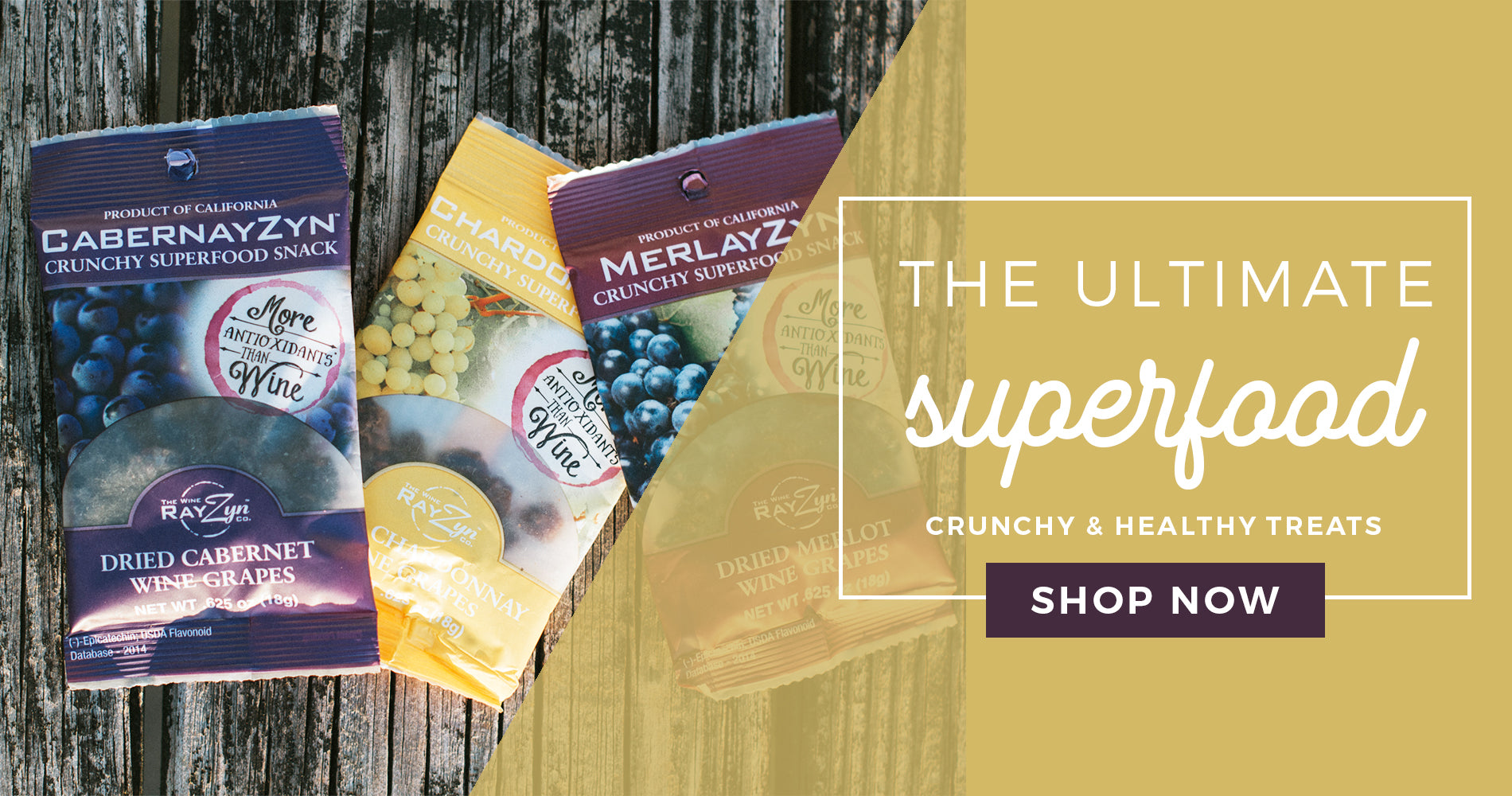 The secret is in the seed! Wine RayZyn™ dried wine grapes are high in fiber, low in fat and cholesterol, and have more antioxidants than wine. Our health foods have no artificial flavors, no preservatives and are naturally sweet. RayZyns are a simple whole food and one of the best superfoods on the market.